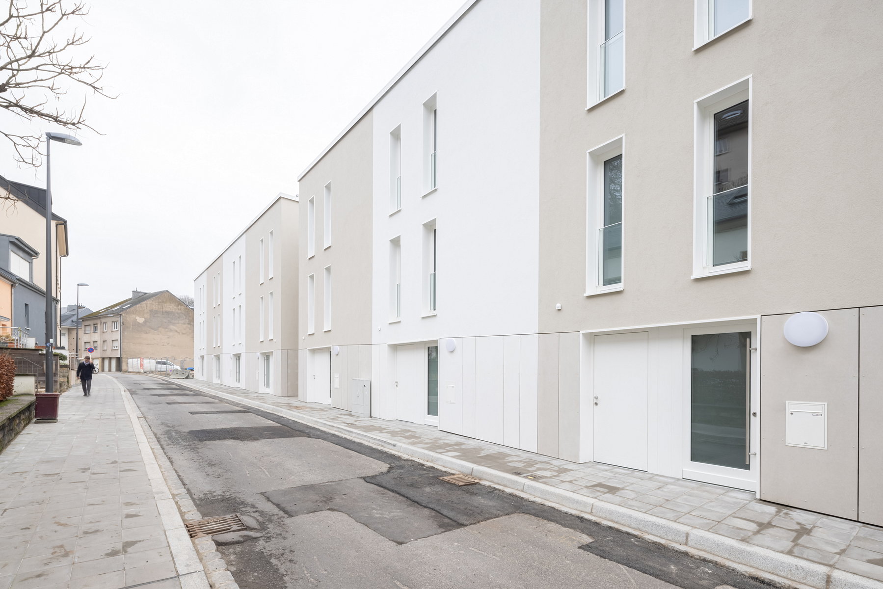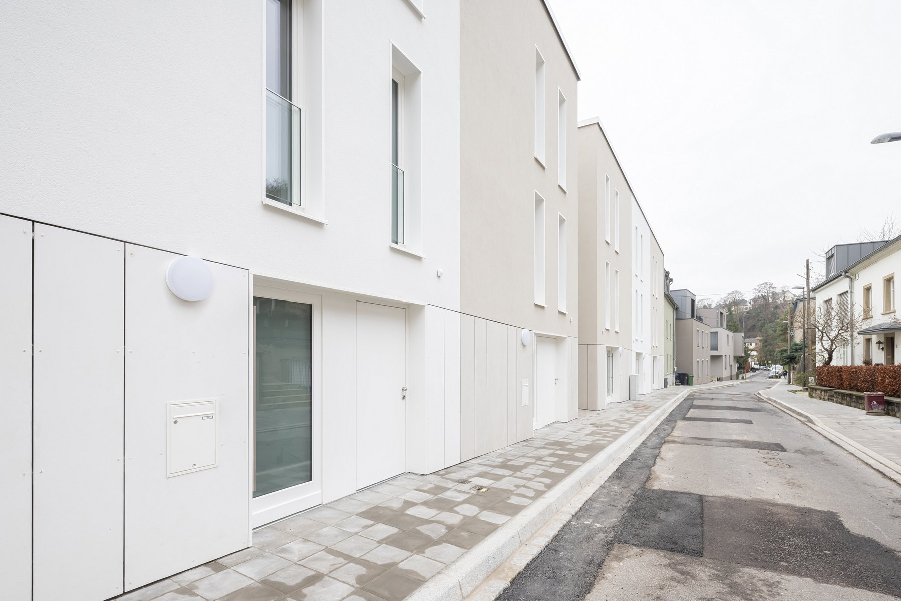 suite au concours ‘baulücken III’ en 2014, la ville de luxembourg a inauguré le janvier 21.2021 un ensemble de 7 maisons d’habitation dans le quartier du rollingergrund.