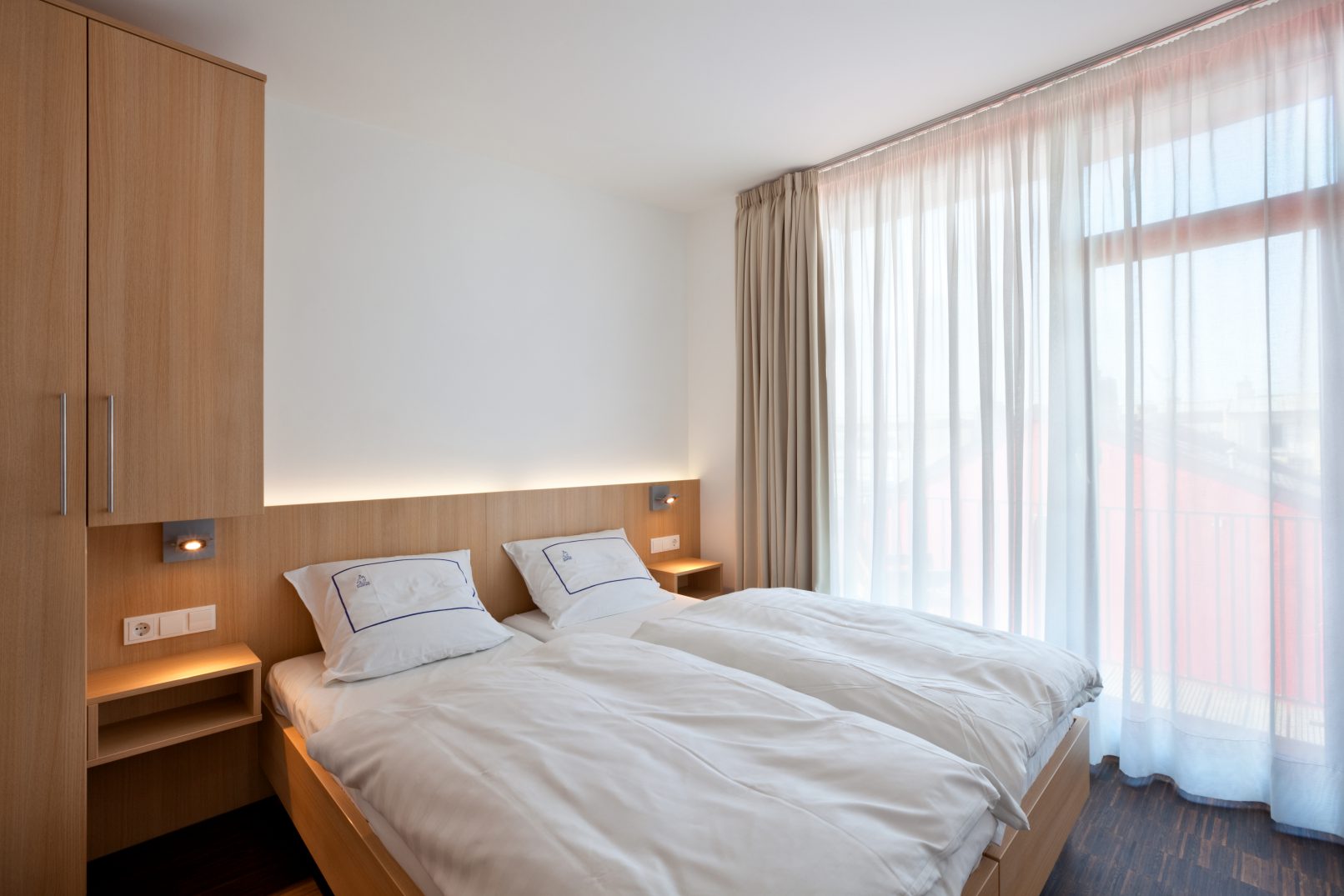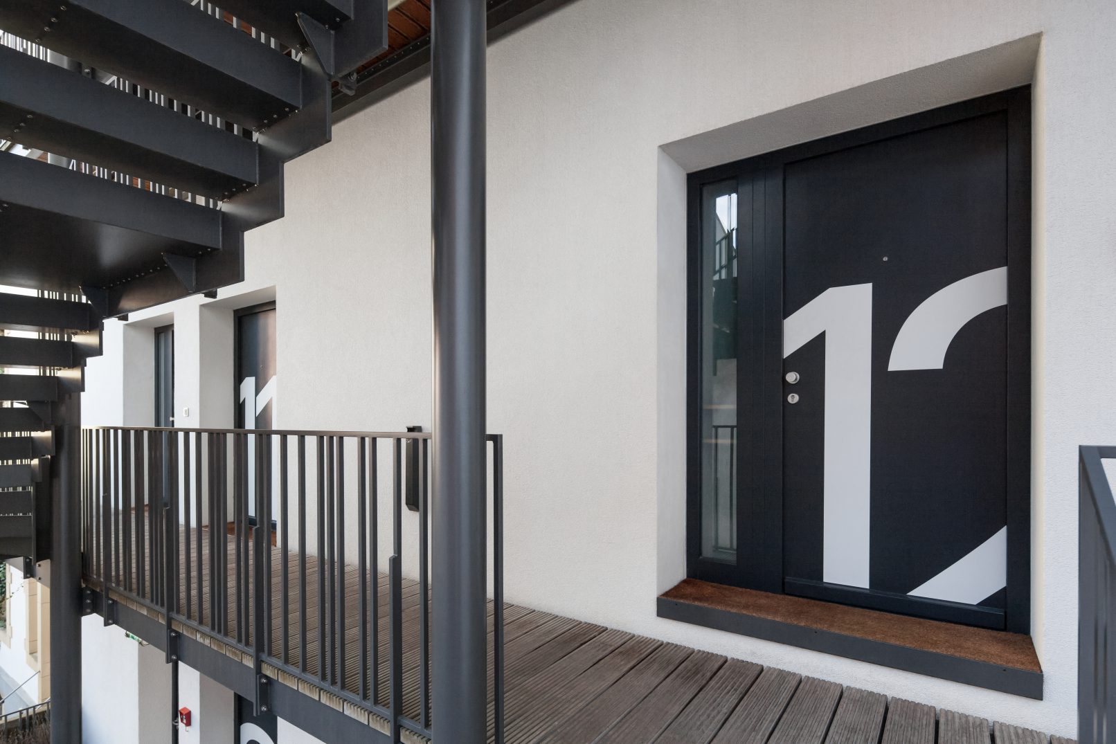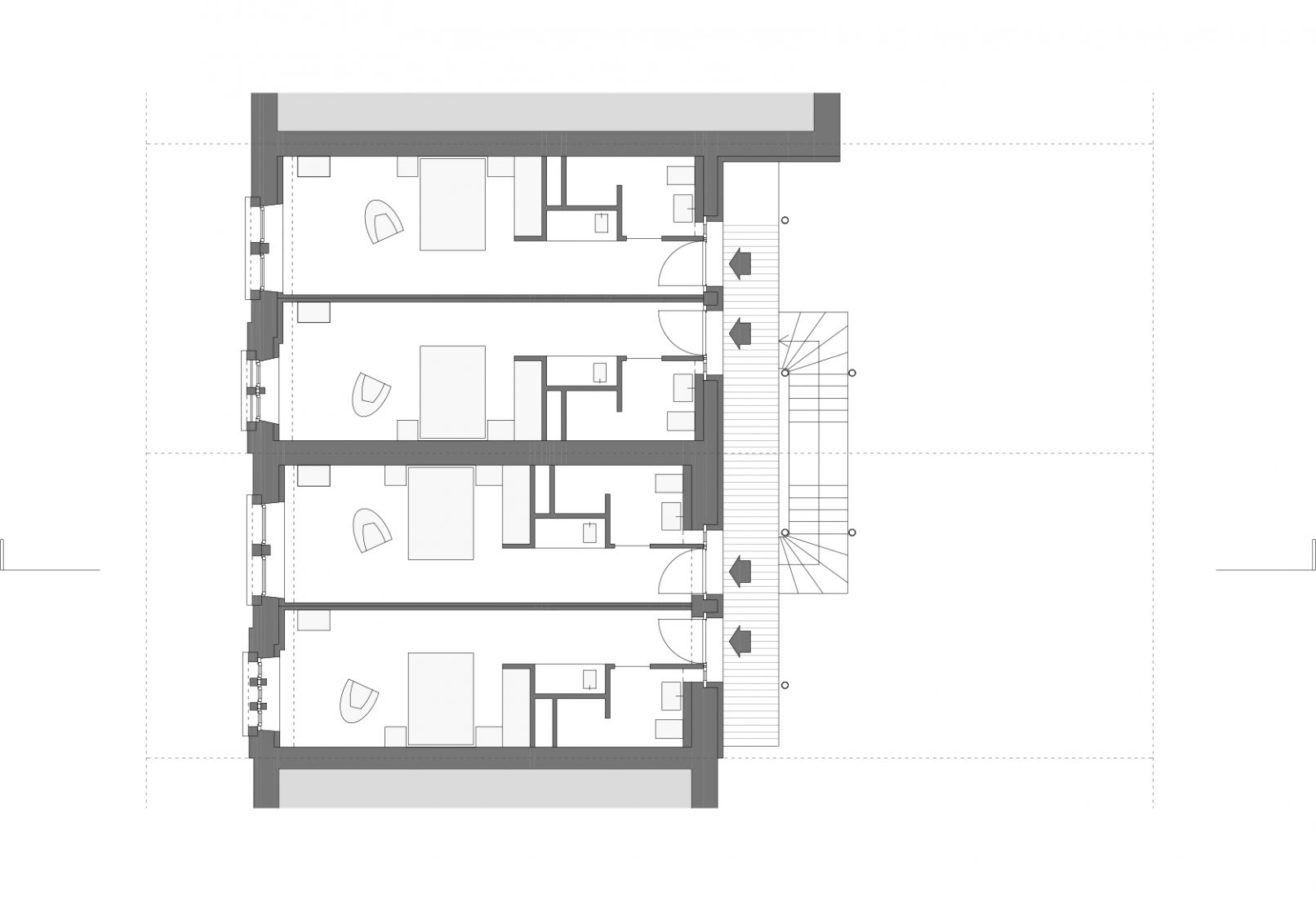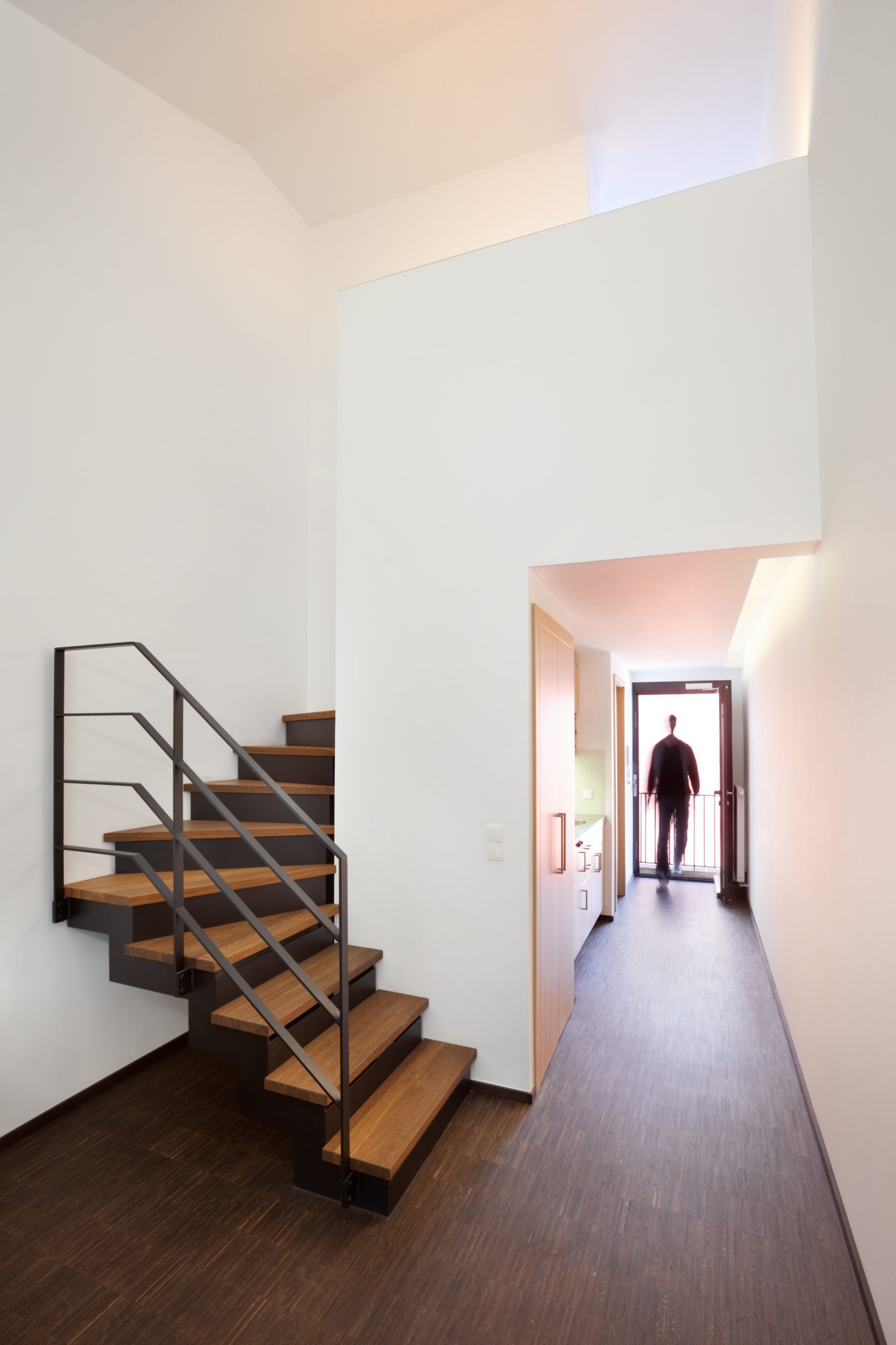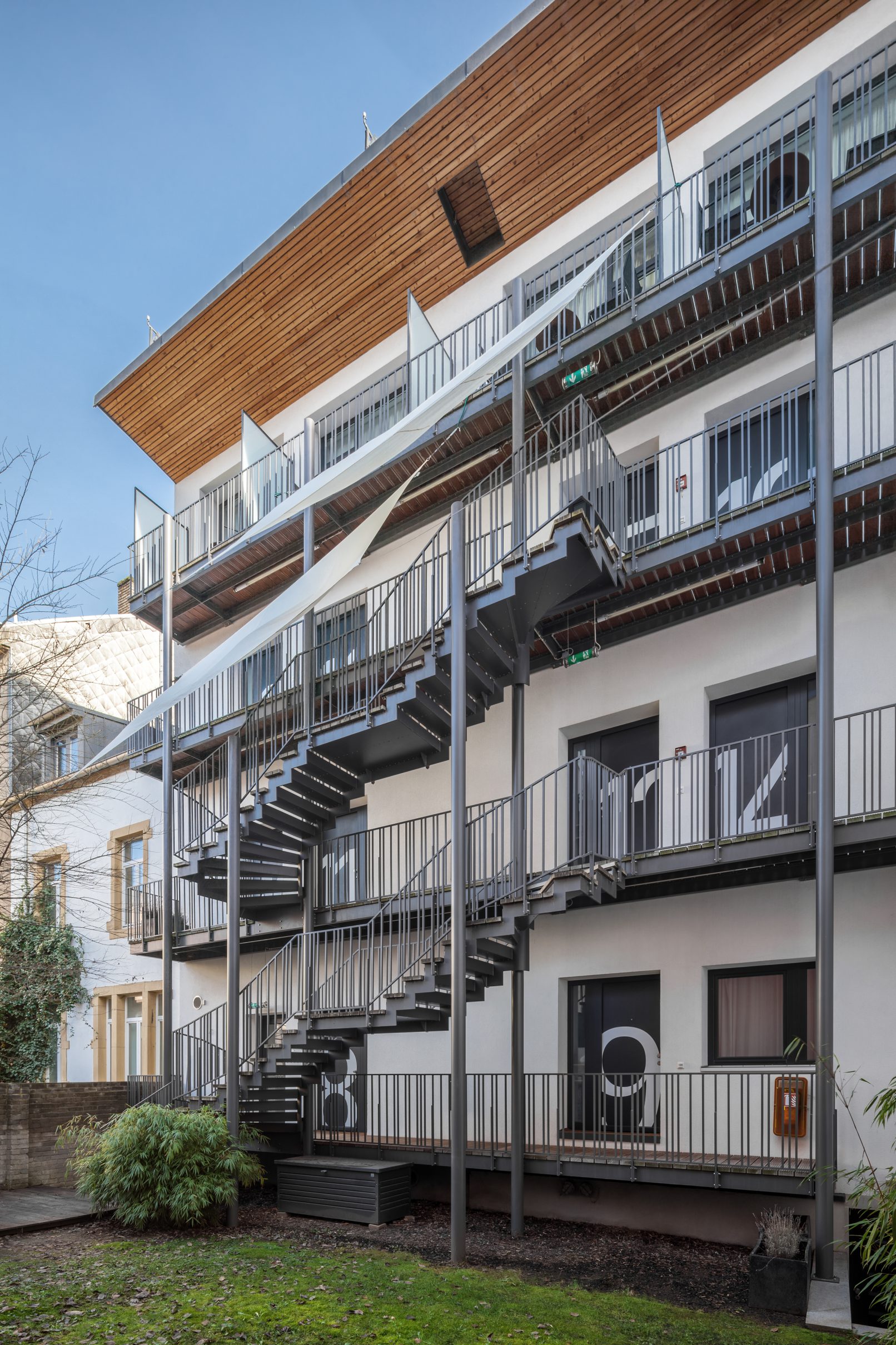 la transformation de deux maisons d’habitation adjacentes a laissé place à un appart hôtel composé de 11 studios, dont 4 en duplex aux niveaux supérieurs, dans le quartier de la gare à luxembourg.