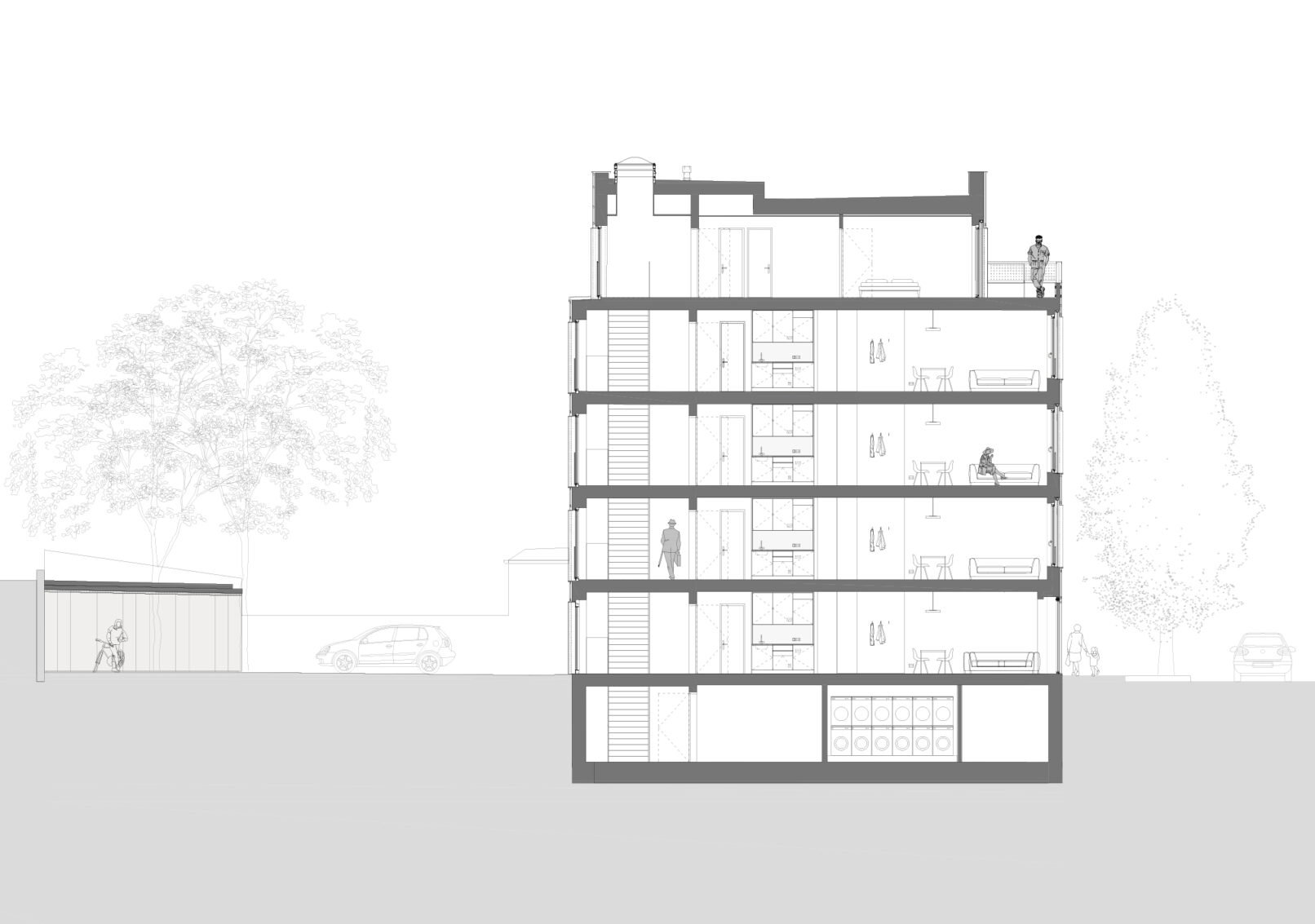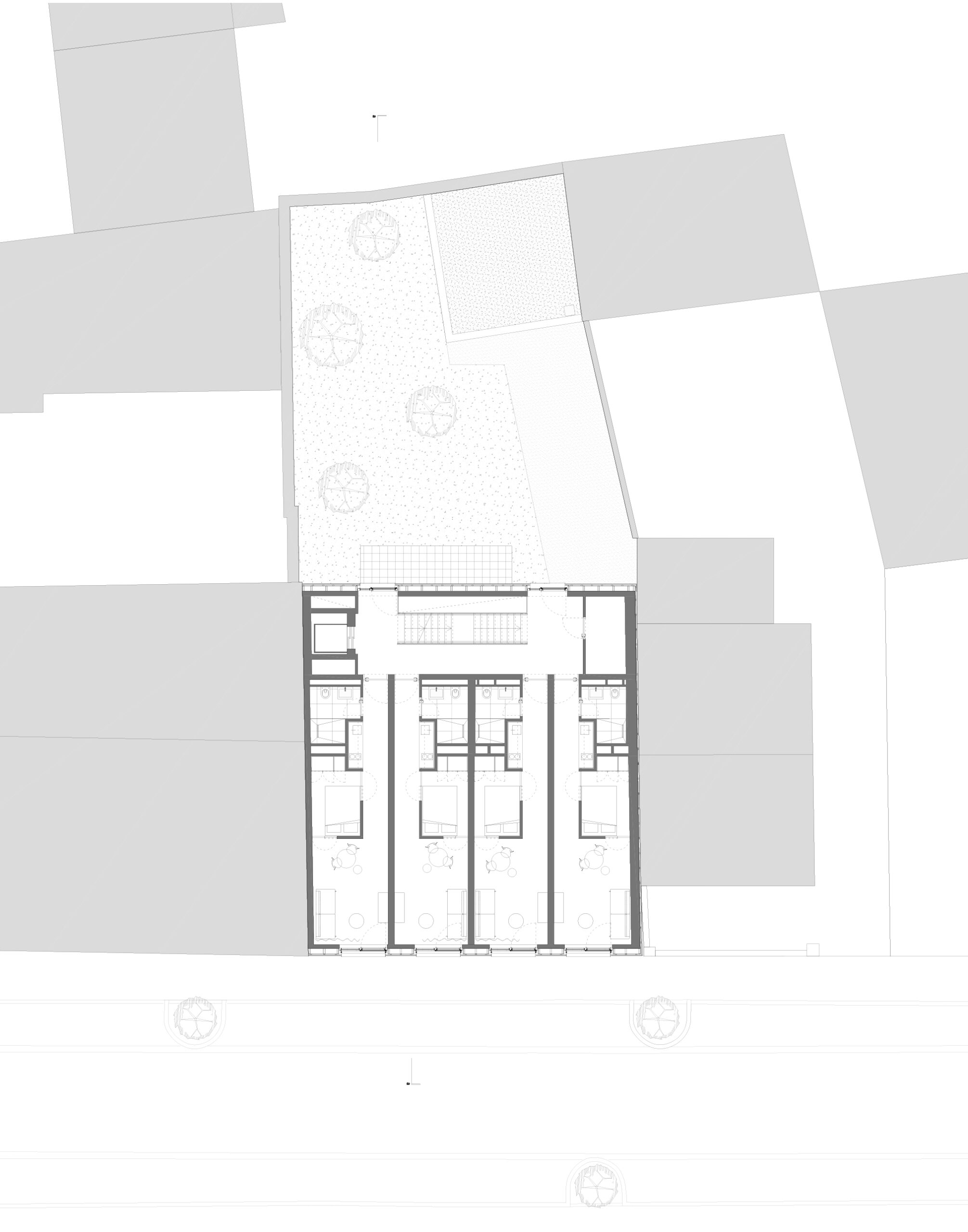 le projet offre 14 chambres-studios et 2 suites au dernier niveau destinées à la location à moyen terme. les 2 suites disposent d’une généreuse terrasse orientée sud-ouest.