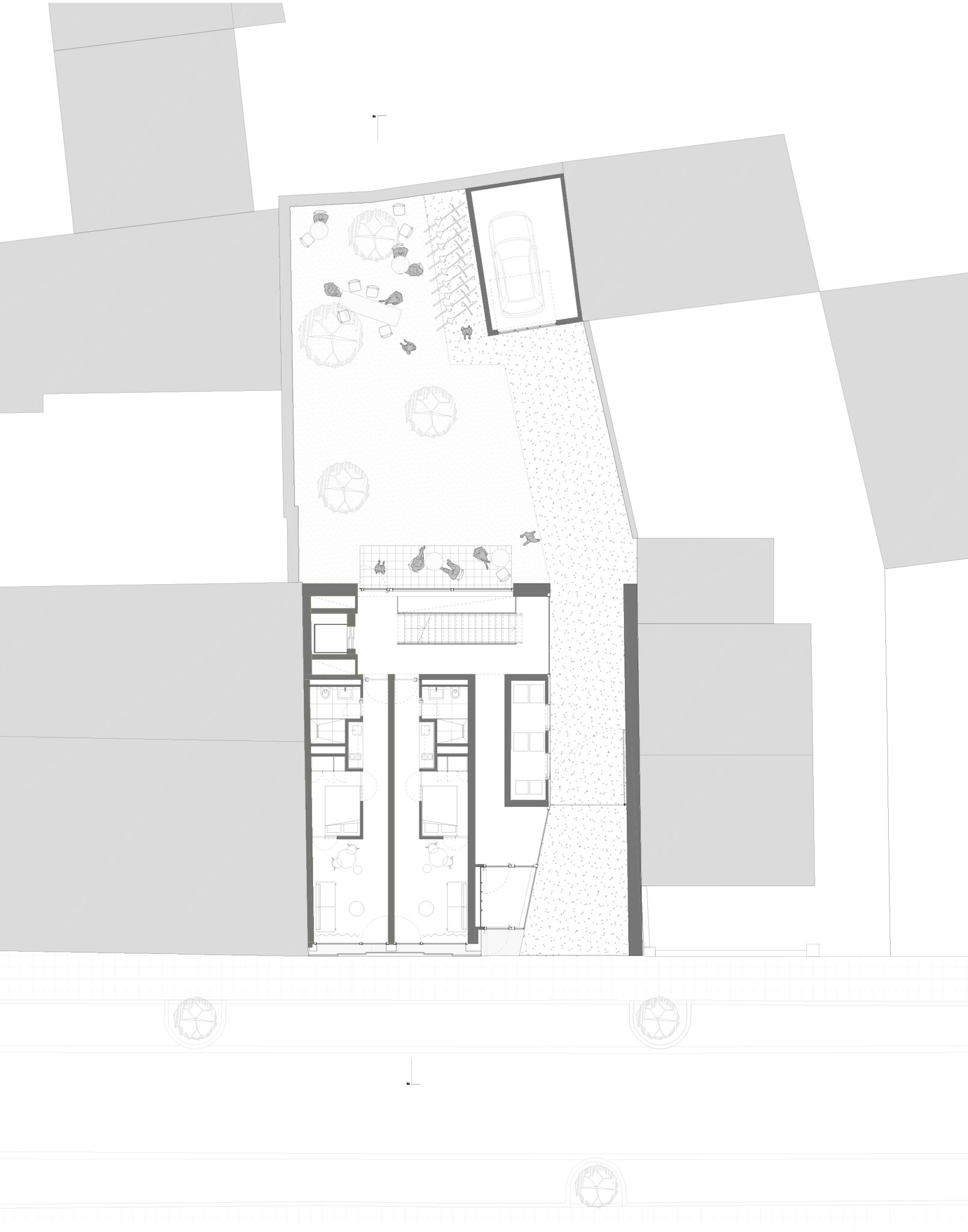 tout commença par un appel téléphonique en fin de journée pour un nouveau projet pour un nouveau client qu’un entrepreneur avait aiguillé vers notre bureau. à la description du site, nous avons compris qu’il s’agissait de la parcelle située juste à côté de notre bureau, servant de parking depuis des années.