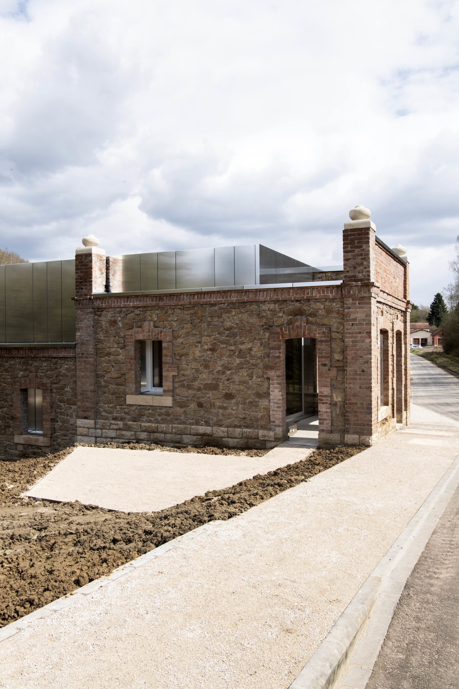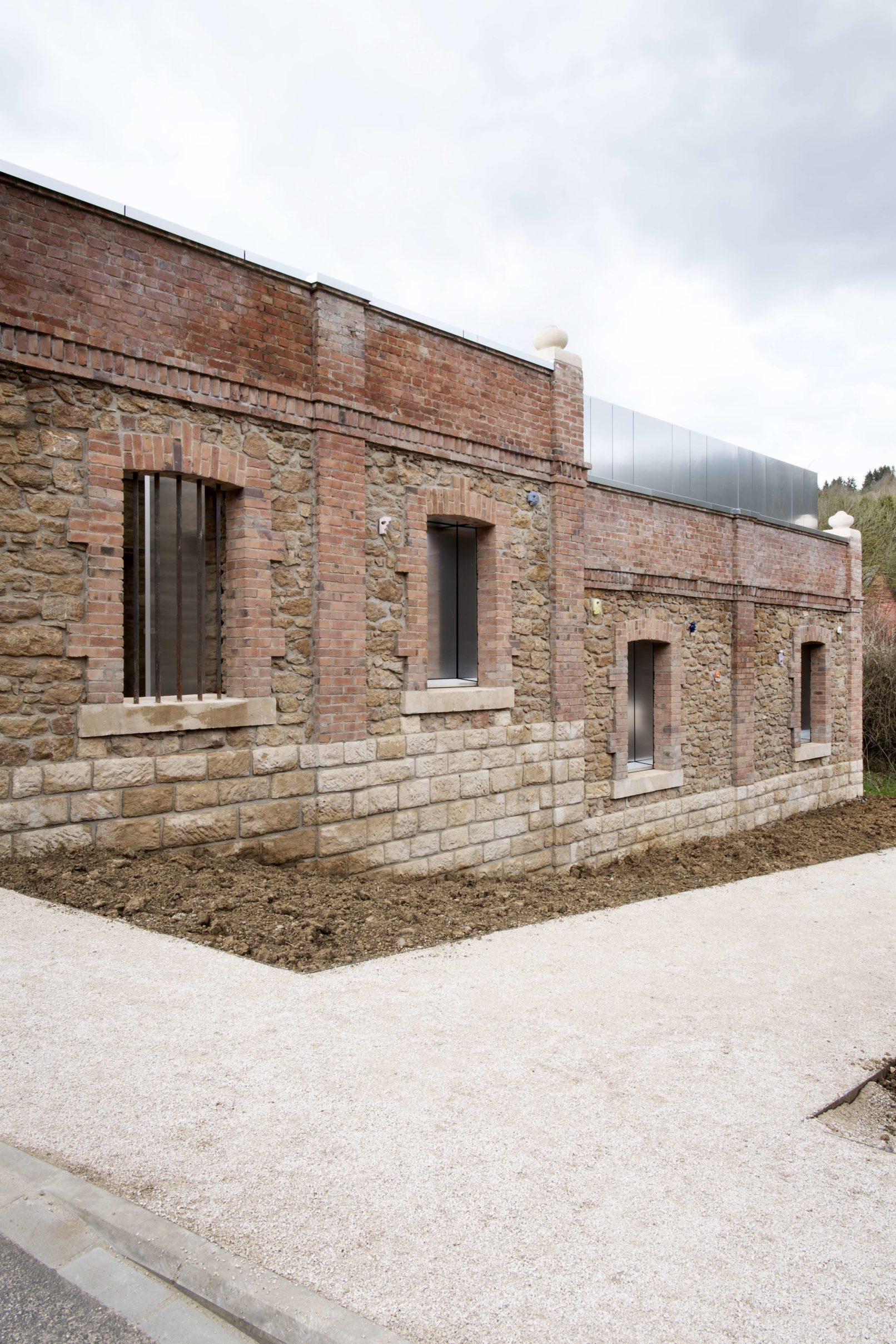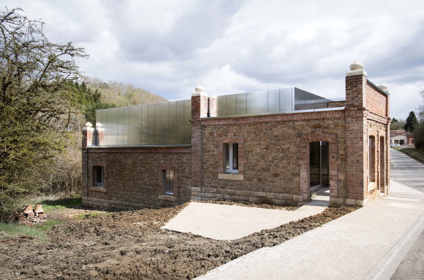 d’abord, la toiture existante et une cloison séparative scindant la maison gonner en deux ont ainsi été enlevées avant que l’ancienne bâtisse ne soit consolidée et remise en valeur pour préserver son authenticité.