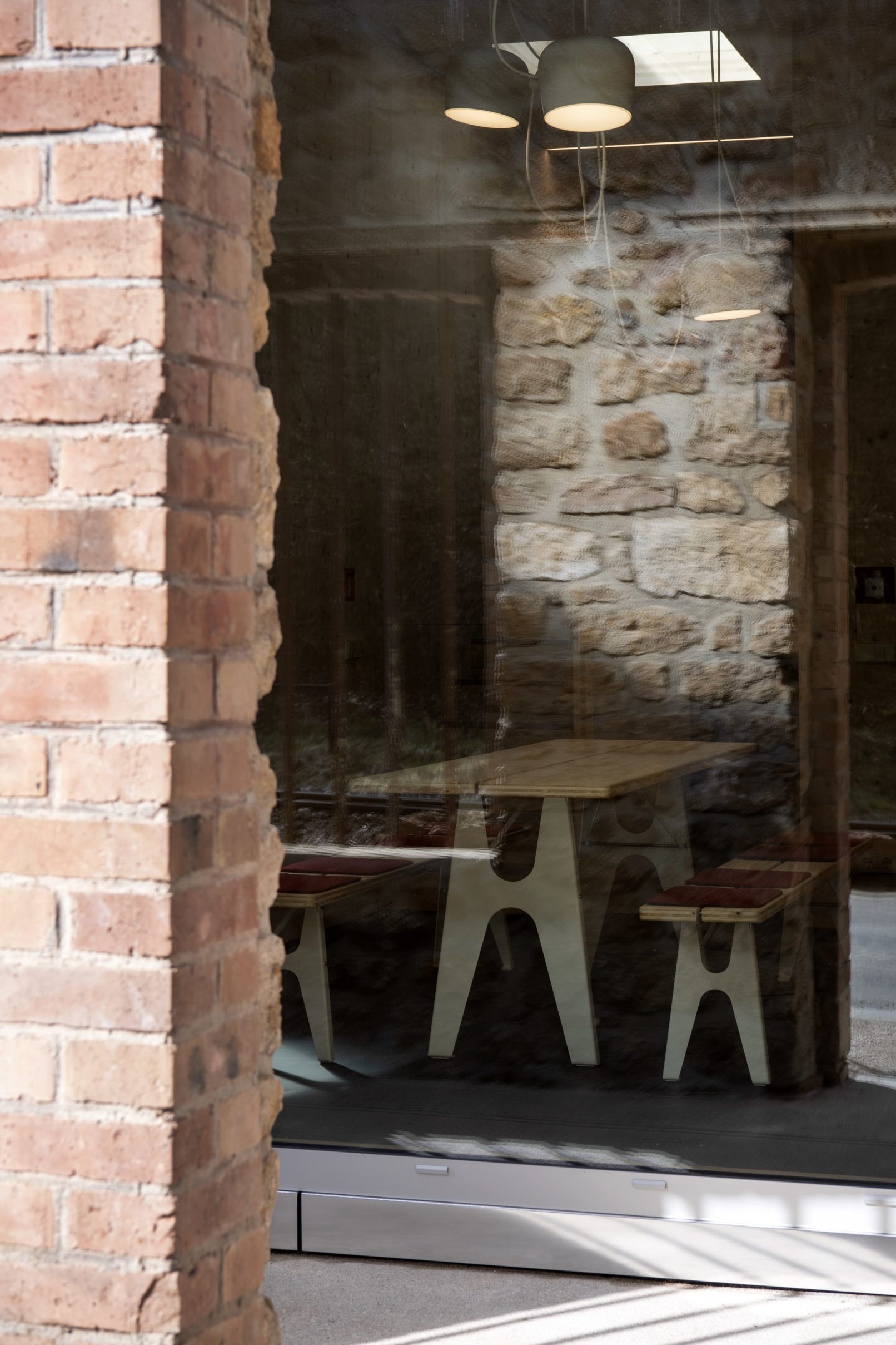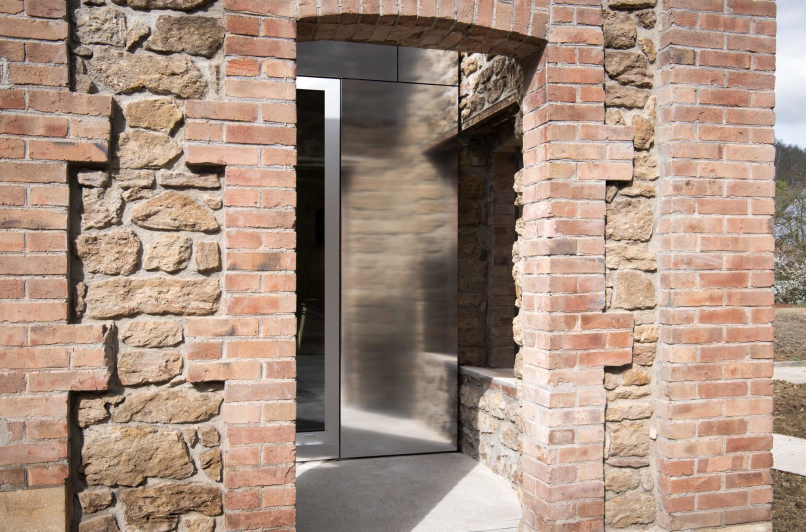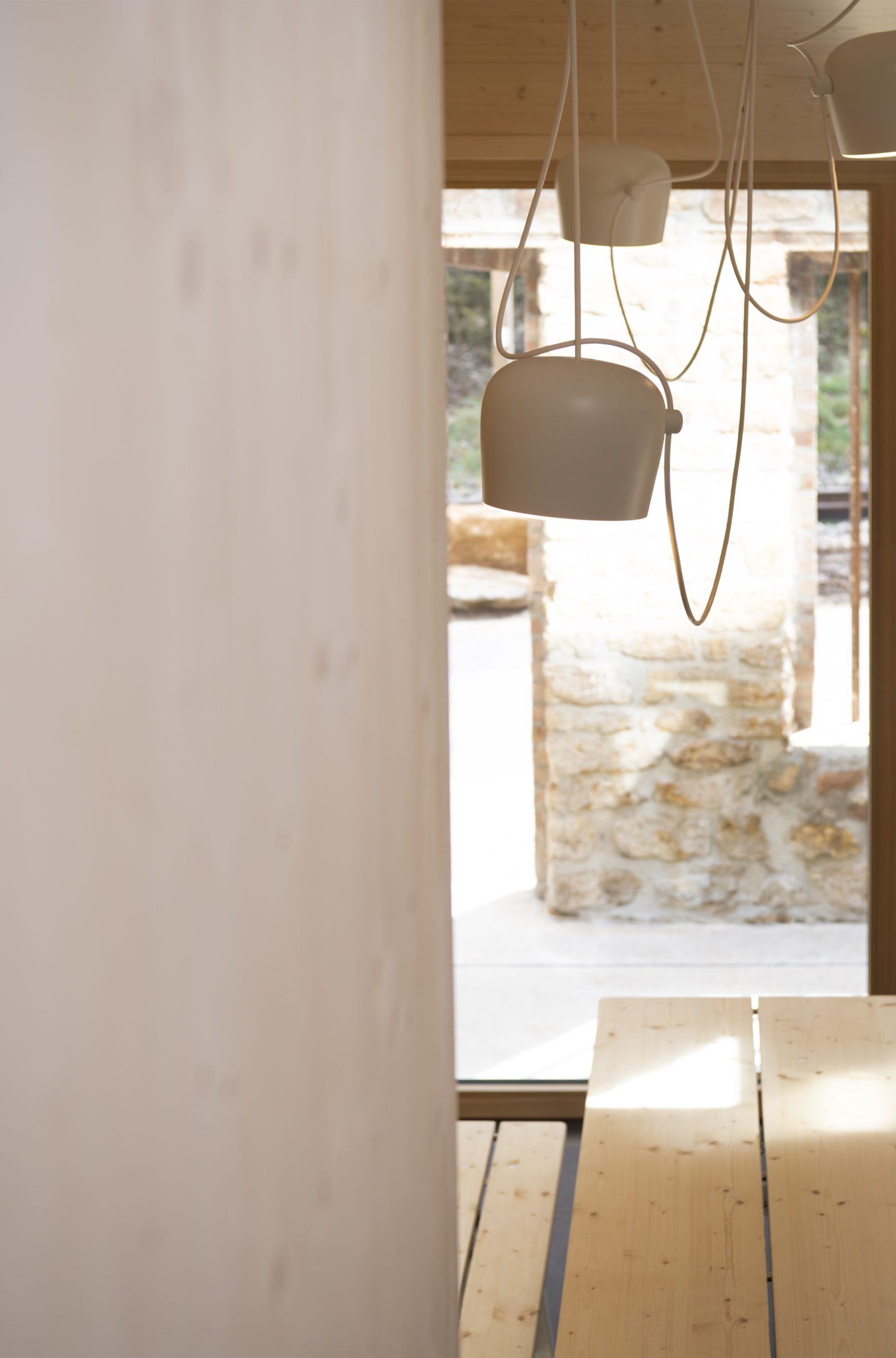 d’abord, la toiture existante et une cloison séparative scindant la maison gonner en deux ont ainsi été enlevées avant que l’ancienne bâtisse ne soit consolidée et remise en valeur pour préserver son authenticité.
