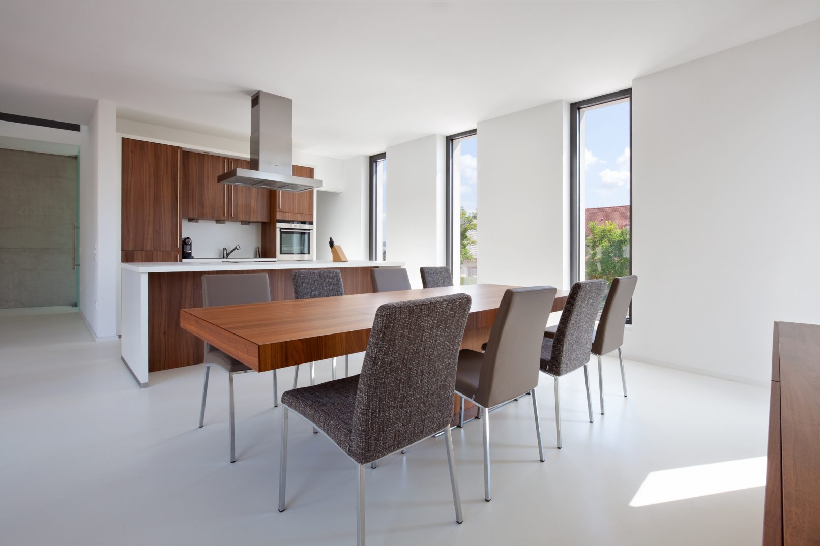 la maison d’habitation a été construite selon les critères de maison à basse consommation en énergie: ouvertures généreuses du volume vers le sud-ouest, orientation qui permet au bâtiment d’emmagasiner un maximum de chaleur et, par conséquent, de la rediffuser à l’intérieur. la surchauffe en été est évitée par des stores extérieurs. le chauffage s‘effectue par une pompe à chaleur air/eau combinée à un chauffage au sol et des panneaux solaires participent au réchauffement de l’eau sanitaire. la maison est équipée d’un système de ventilation à double flux avec récupération de chaleur.