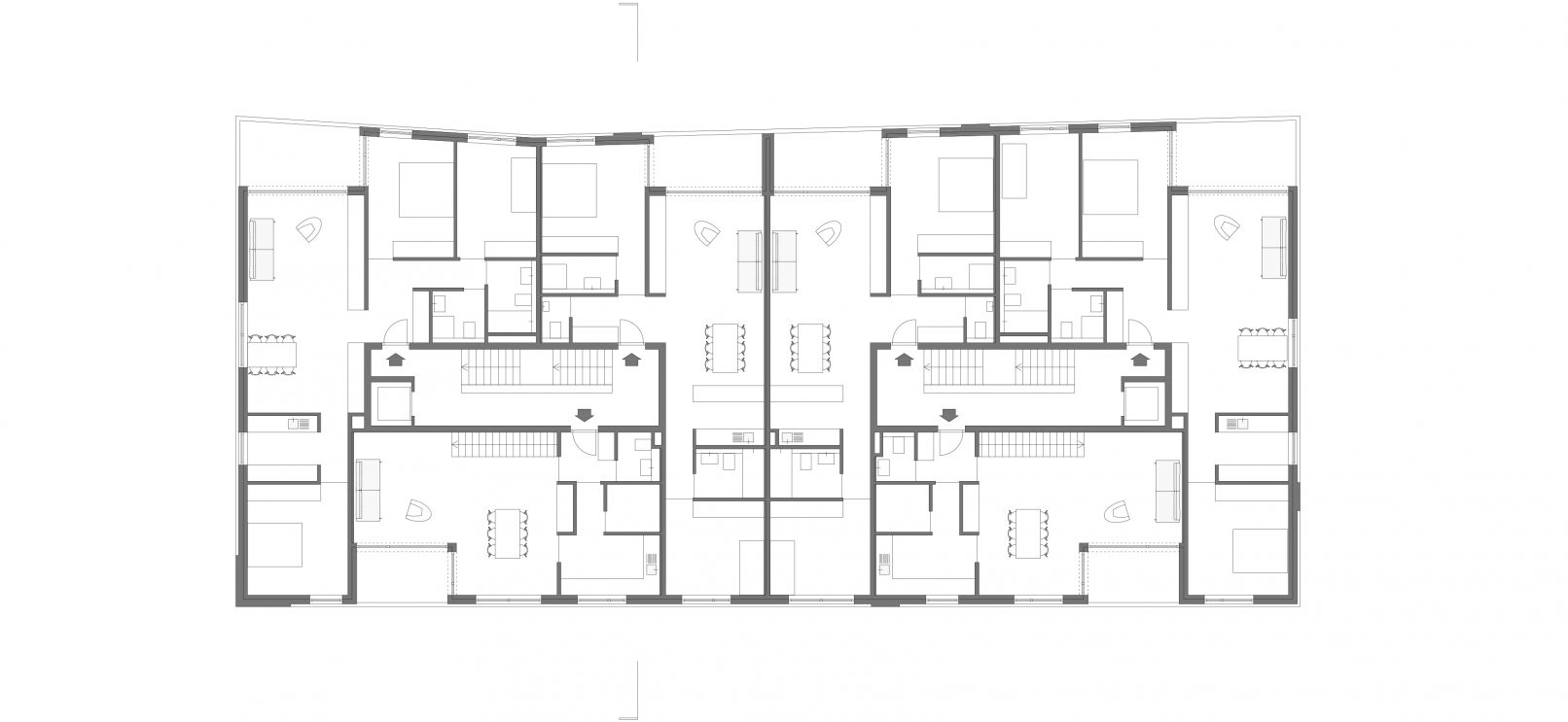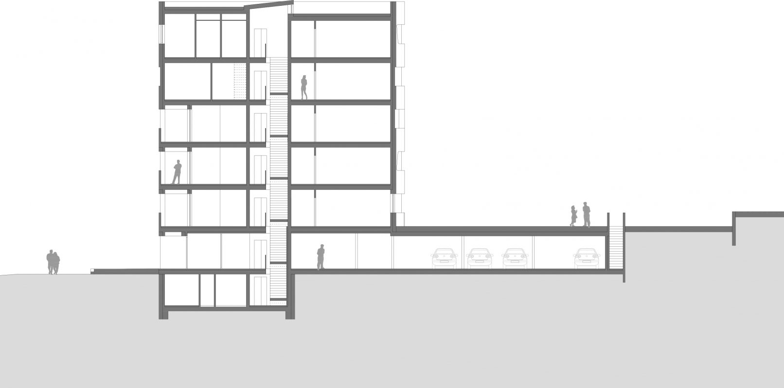 l’immeuble résidentiel comporte 31 logements répartis sur un rez-de-chaussée, un rez-de-jardin et 4 niveaux. le projet propose 10 typologies différentes d’appartements, avec d’une chambre à trois chambres et demie et des surfaces variant de 55,50 à 124,00 m2. le parking souterrain comporte 31 emplacements y compris 1 emplacement pour personnes à mobilité réduite.