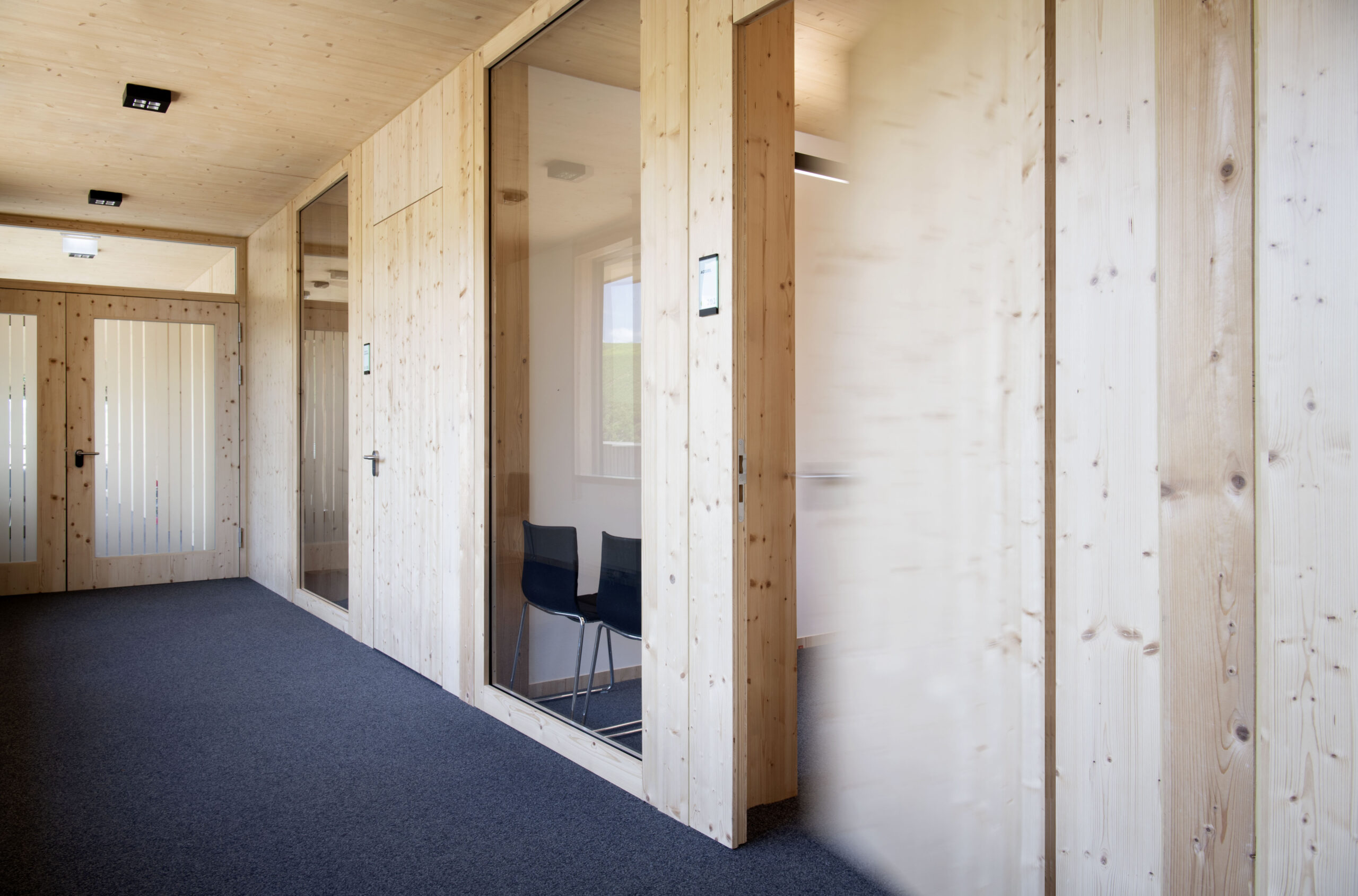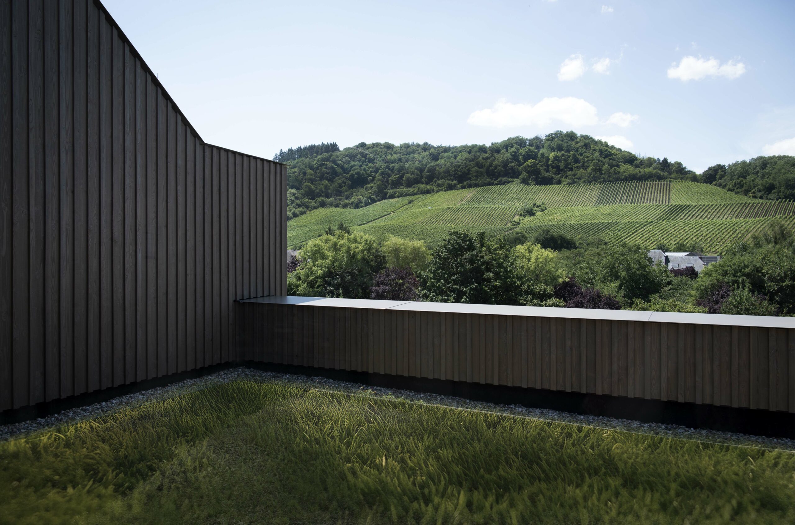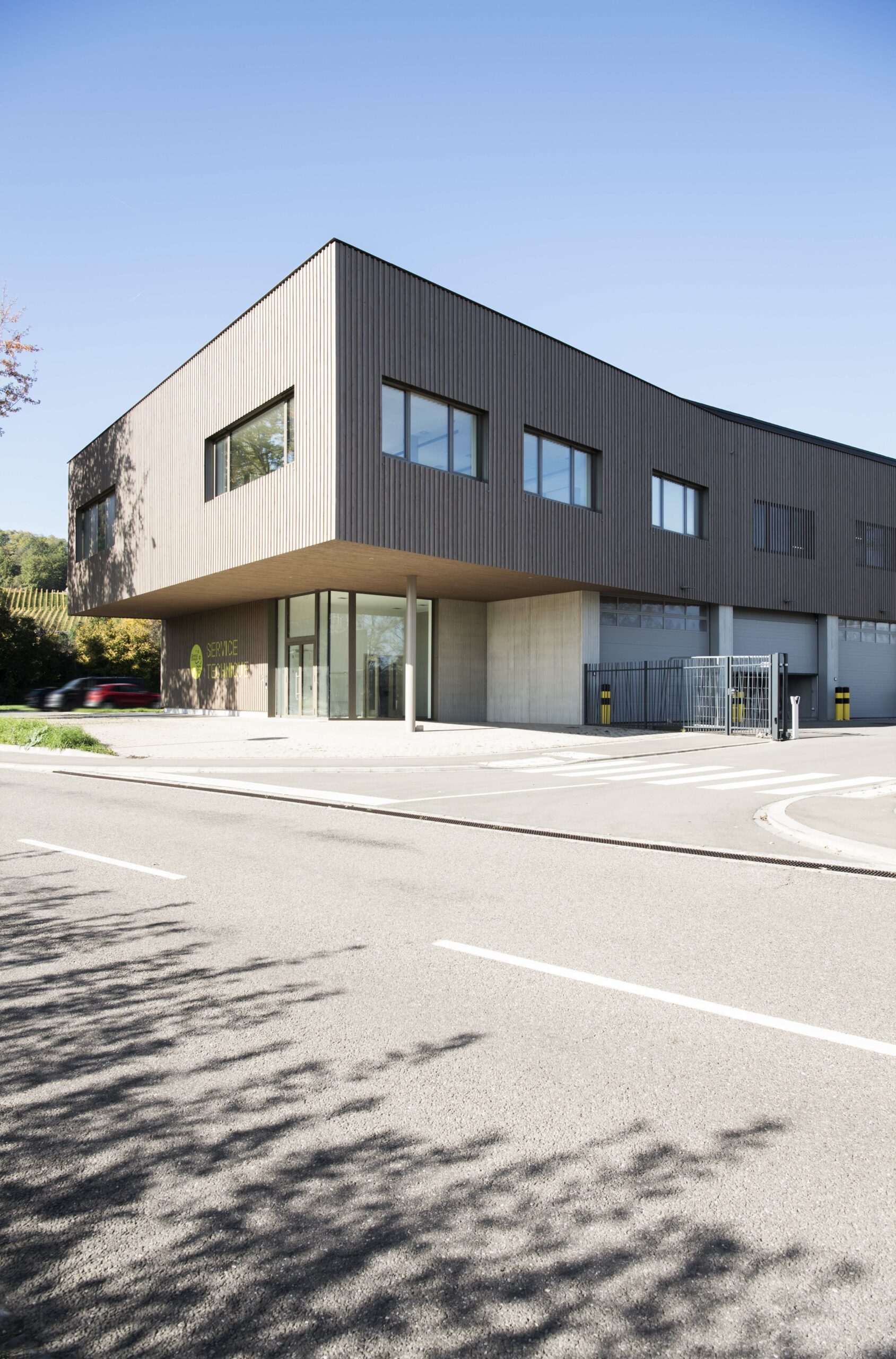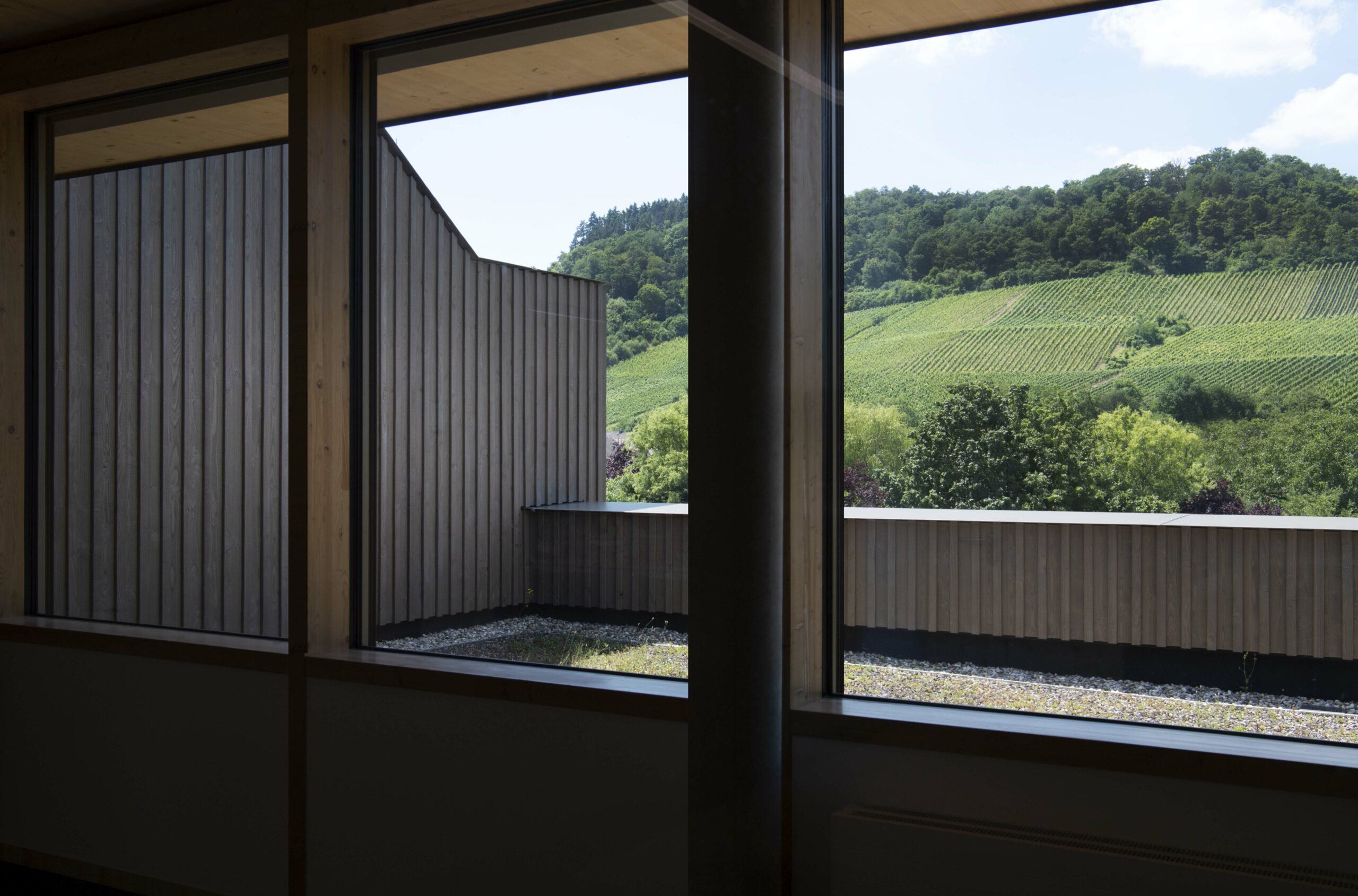 la structure portante est réalisée en béton armé, préfabriqué ou coulé sur place. le niveau inférieur présente un béton apparent, tandis que la partie supérieure est habillée d’un bardage en bois vertical. la toiture plate est en grande partie végétalisée, contribuant à l’intégration paysagère et à la performance environnementale du bâtiment. en cours de chantier, le maître d’ouvrage a décidé d’ajouter un étage supplémentaire afin d’y intégrer les nouveaux locaux du service technique communal. ce dernier niveau accueille les bureaux, salles de réunion et archives. la surélévation repose sur une structure en bois, choisie pour sa légèreté, ses qualités écologiques et son rendu esthétique. les façades de cet étage reprennent le bardage en bois du niveau inférieur et sont largement vitrées, offrant une lumière naturelle généreuse et des vues sur le paysage de la vallée de la moselle.