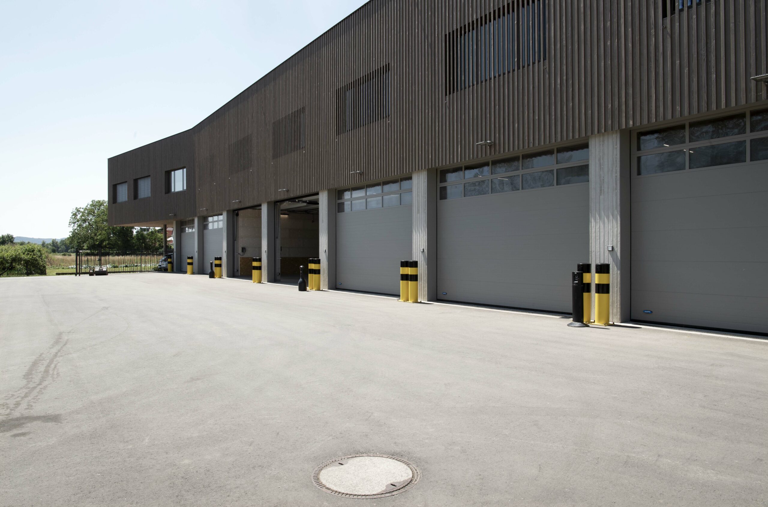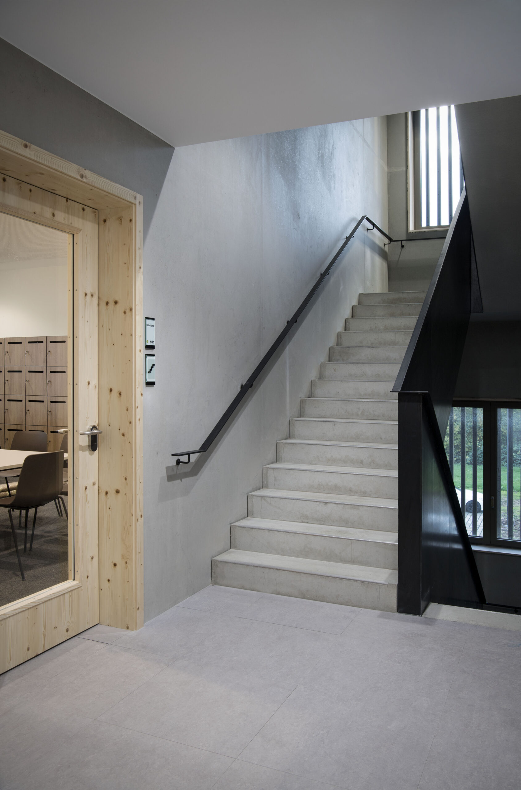 situé en zone inondable, le terrain a imposé la conception d’un rez-de-chaussée immersible, les véhicules et machines mobiles y sont stationnés, tandis que les équipements techniques sont installés au niveau +1.