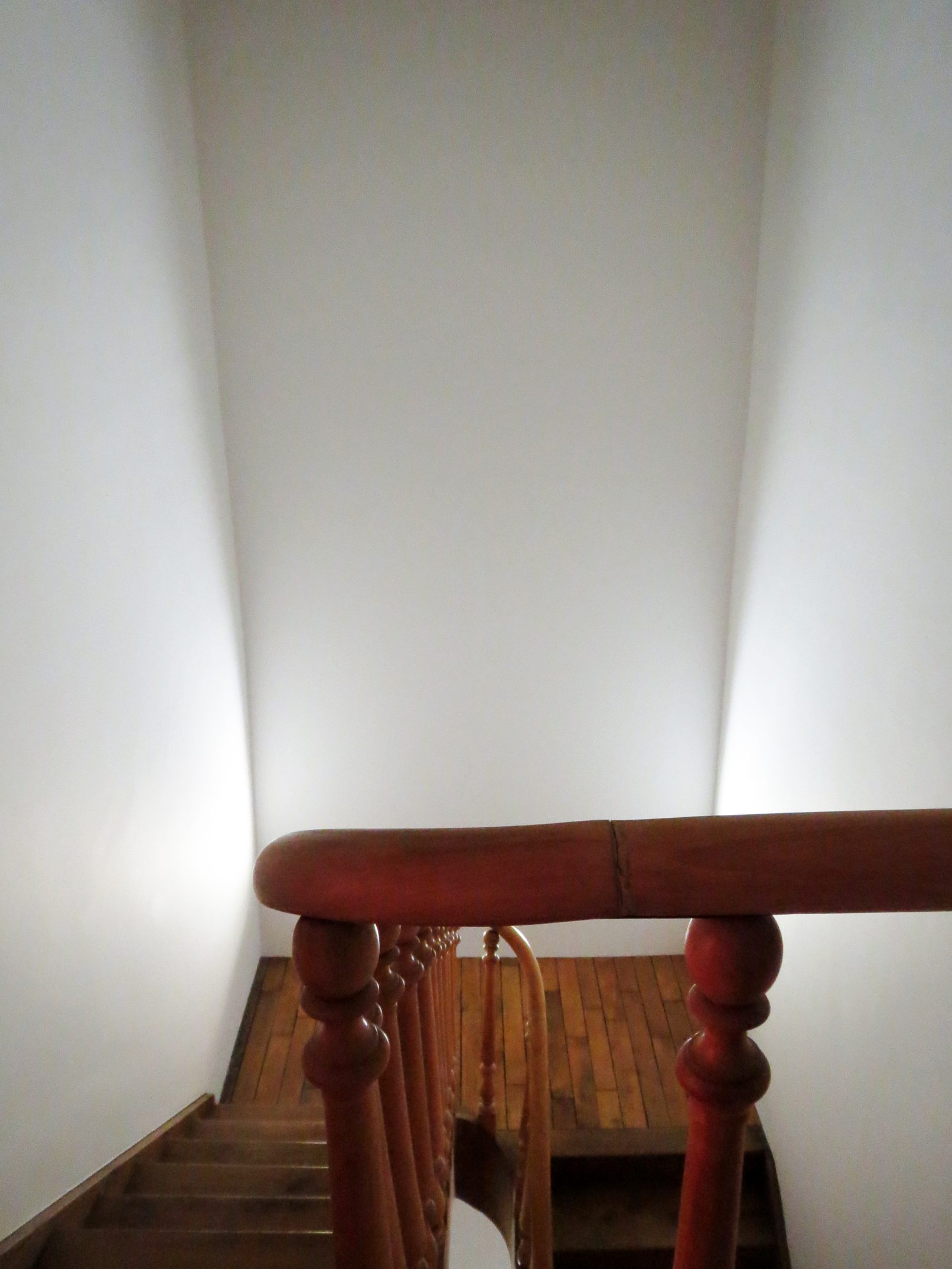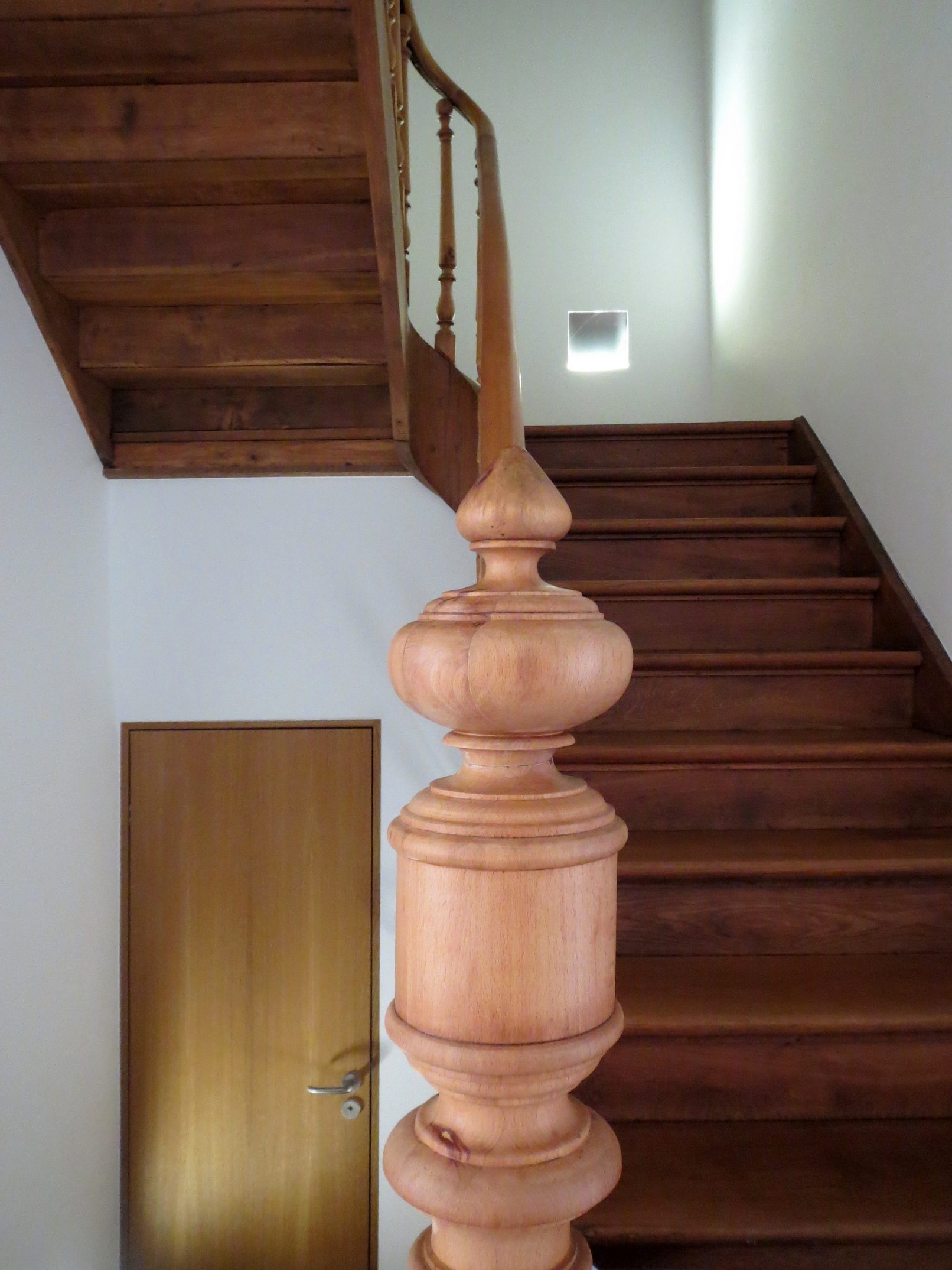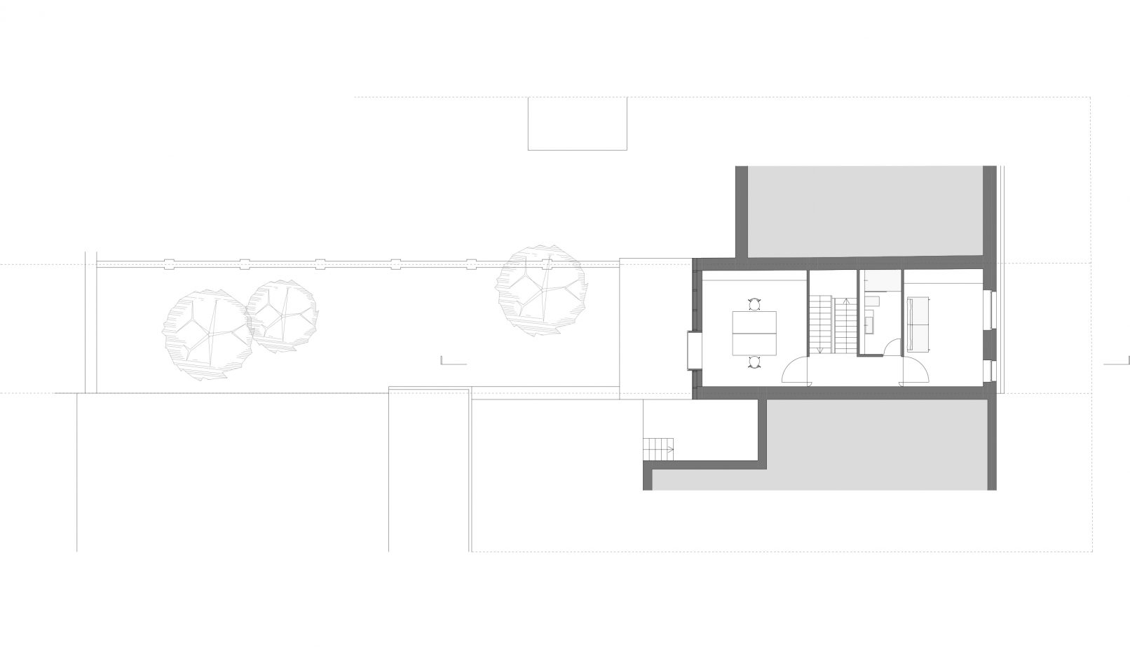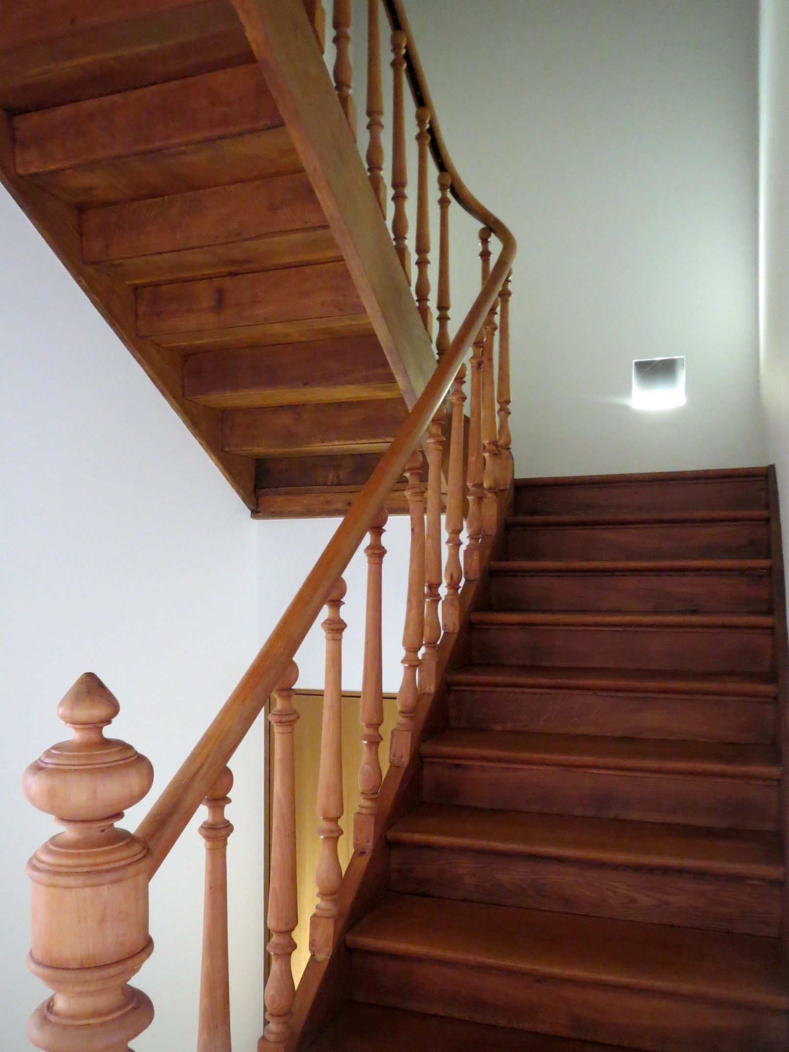l’intérieur de la maison a été épuré en supprimant tout le cloisonnement séparatif afin de maintenir uniquement les cloisons portantes, ainsi que le bel escalier en bois au cœur de la maison. étant donné l’état des anciens planchers en bois, le projet a nécessité le remplacement de ceux-ci par des dalles en béton armé, afin de consolider la structure de la maison.